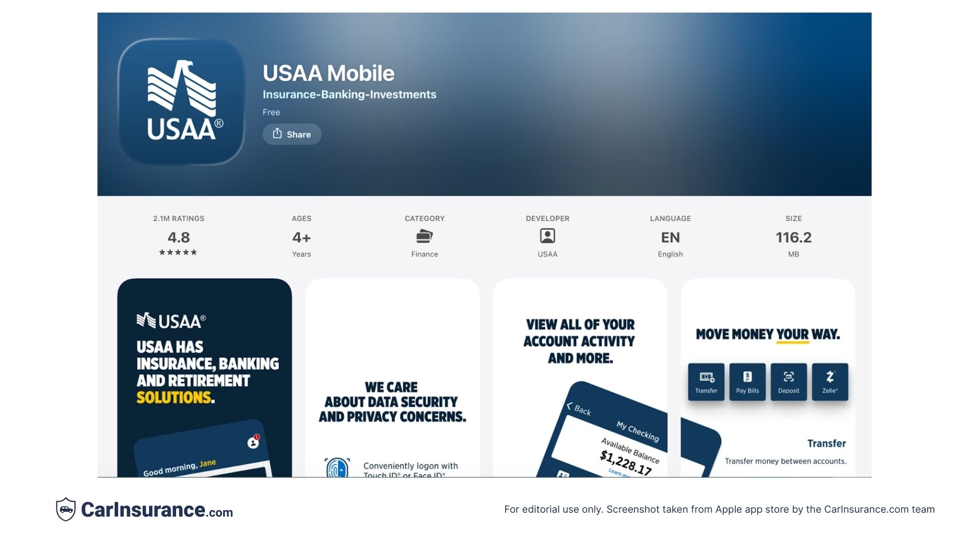 USAA’s mobile app is highly rated, boasting a 4.8-star rating (out of 5) on the iOS App Store, based on more than 2 million reviews. On the Google Play Store, the USAA mobile app has a 4.7 rating, with over 400,000 reviews and 10 million downloads as of November 2025.