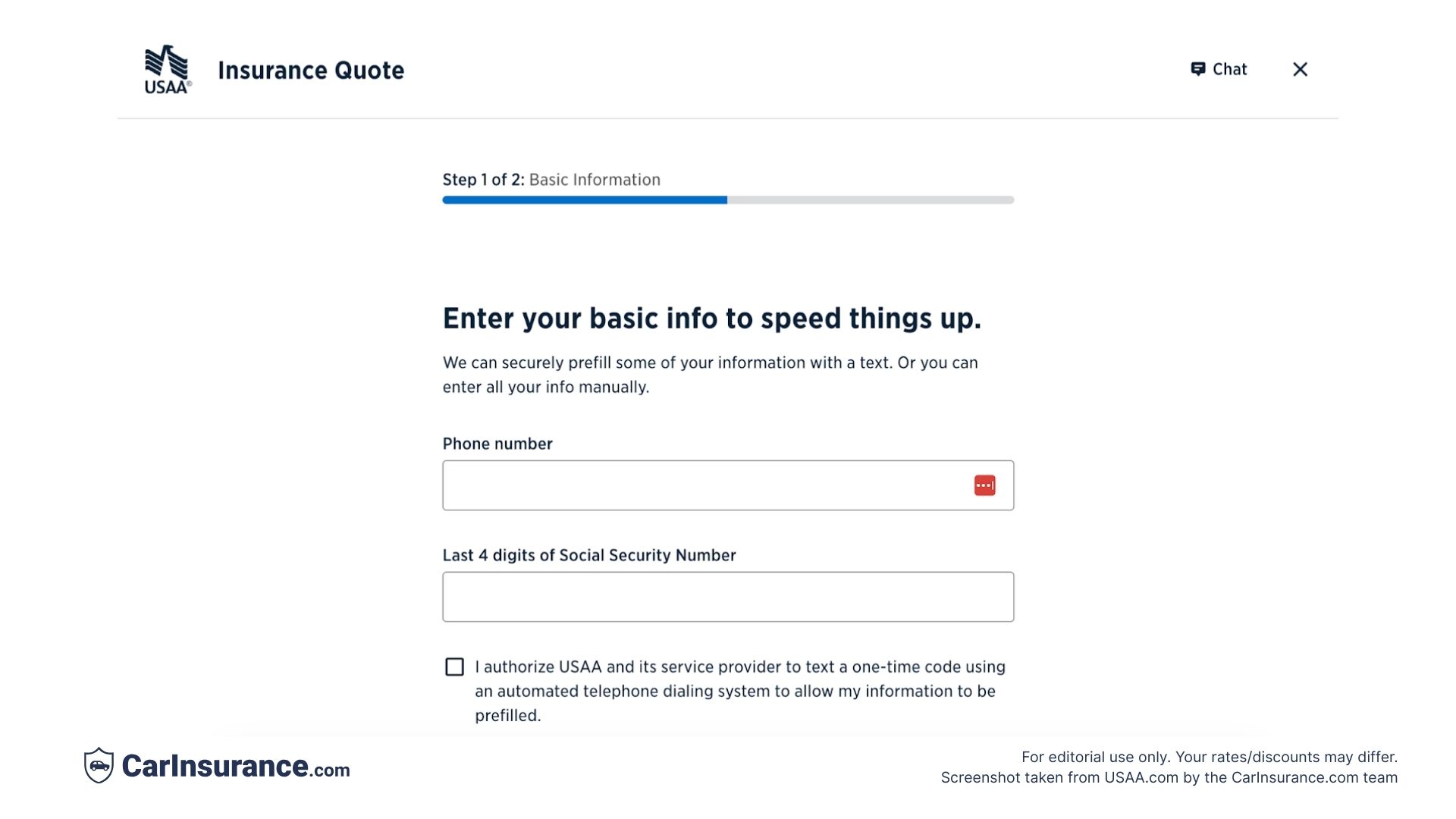 I then had the option to provide my phone number and the last four digits of my Social Security number to have my information pre-filled for me via text authorization, or to enter the information manually.